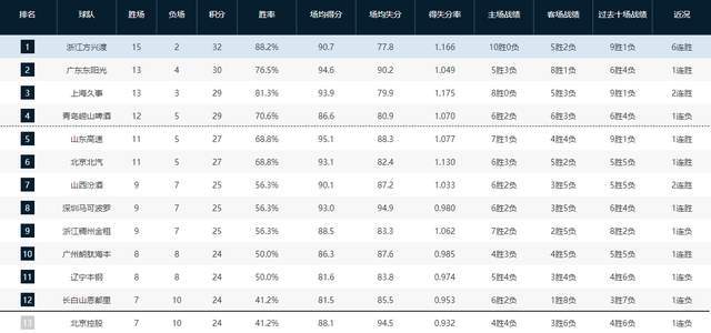 电子竞技赌博-CBA最新排名!广厦第1太稳,广东超上海杀回第2,北控遭29分大败